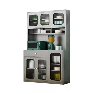 This 1760mm high tipping bucket side cabinet is specially designed for modern catering space. It is made of 201/304 double series stainless steel and innovatively integrates the tipping bucket door design. The cabinet is 420mm deep and 700mm wide. The 5-layer tipping bucket storage is matched with the top tempered glass display area to realize the classified storage and convenient access to tableware, drinks and small household appliances. The tipping bucket design saves door space and is suitable for small and medium-sized apartments and commercial scenarios. Through material optimization and functional zoning, it balances storage efficiency, durability and space aesthetics.